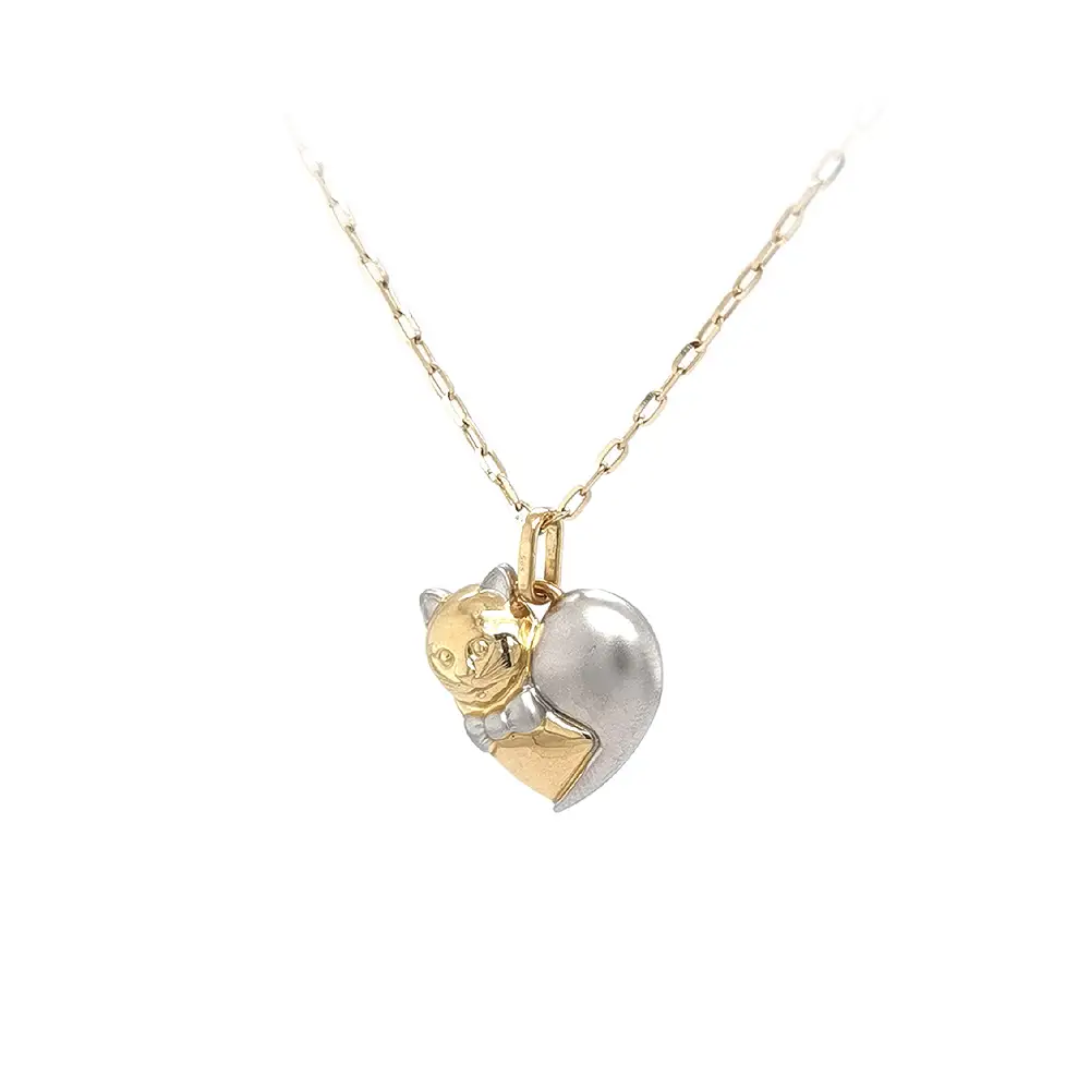 Anhänger Herz Katze aus kombiniertem Gold