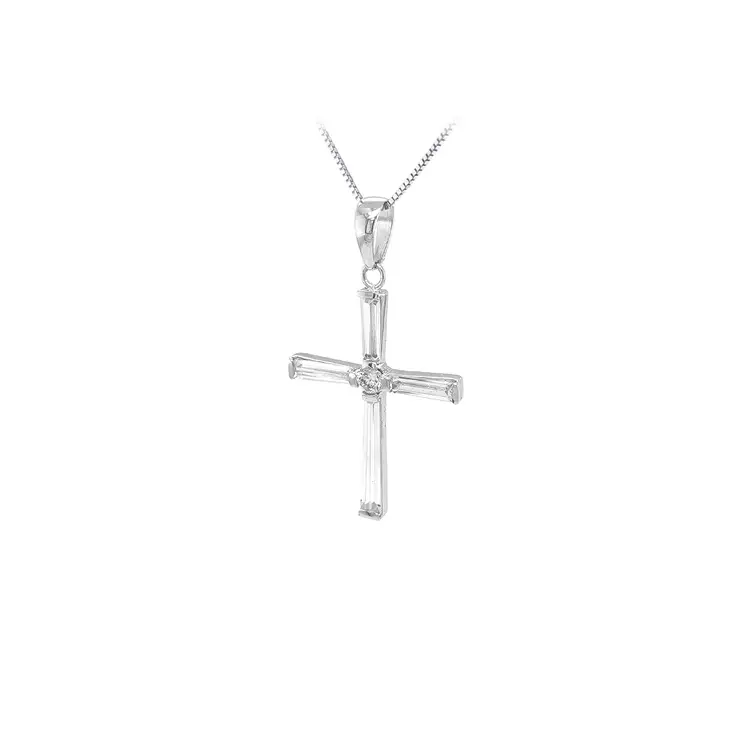 Anhänger Kreuz mit Zirkonen aus Weißgold