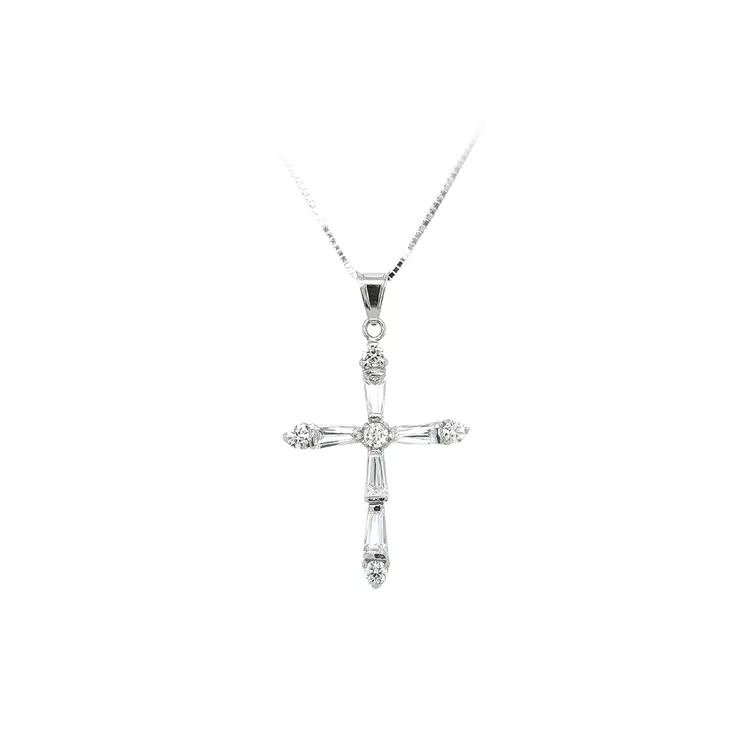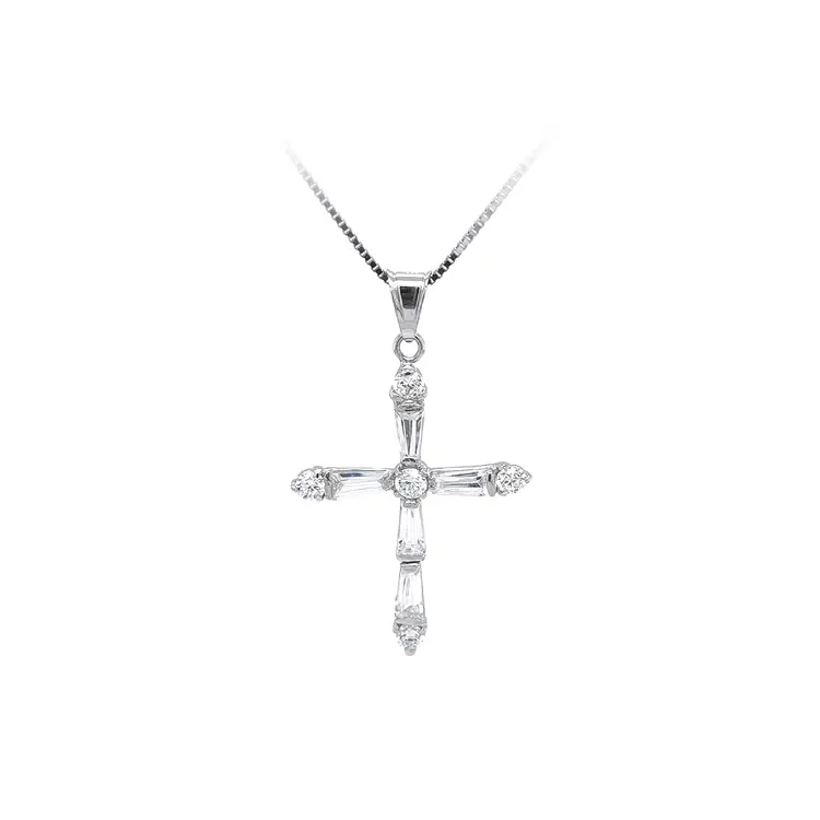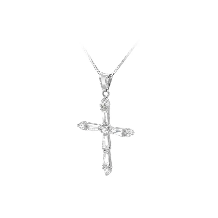 Anhänger Kreuz mit Zirkonen aus Weißgold