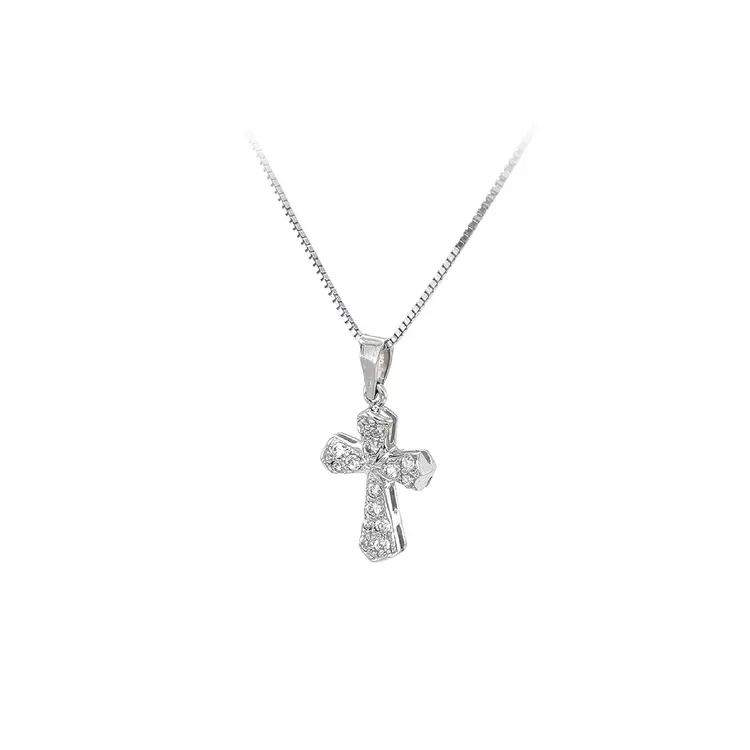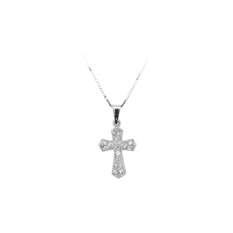 Anhänger Kreuz mit Zirkonen aus Weißgold
