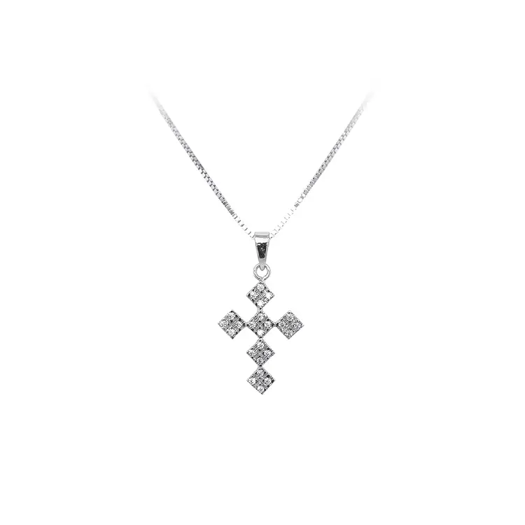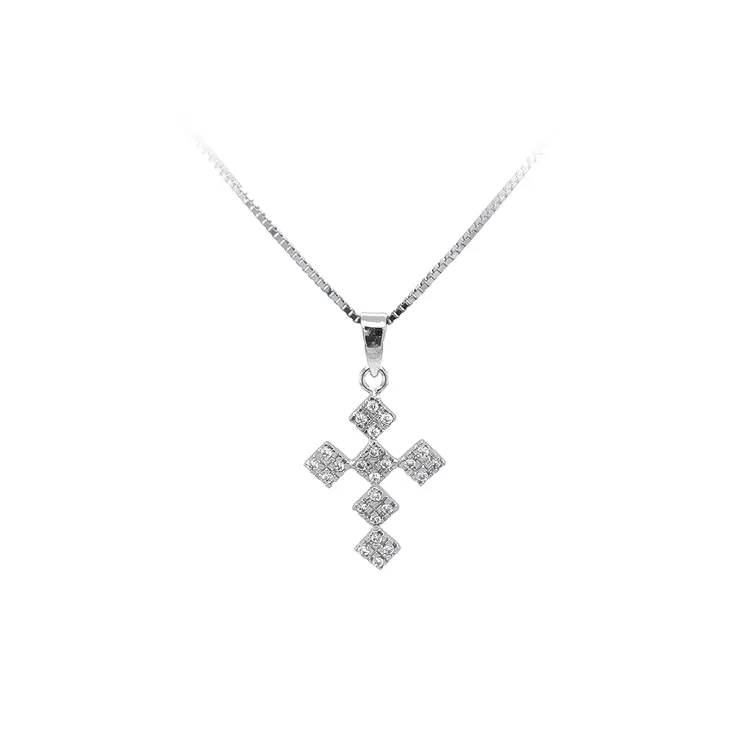 Anhänger Kreuz mit Zirkonen aus Weißgold