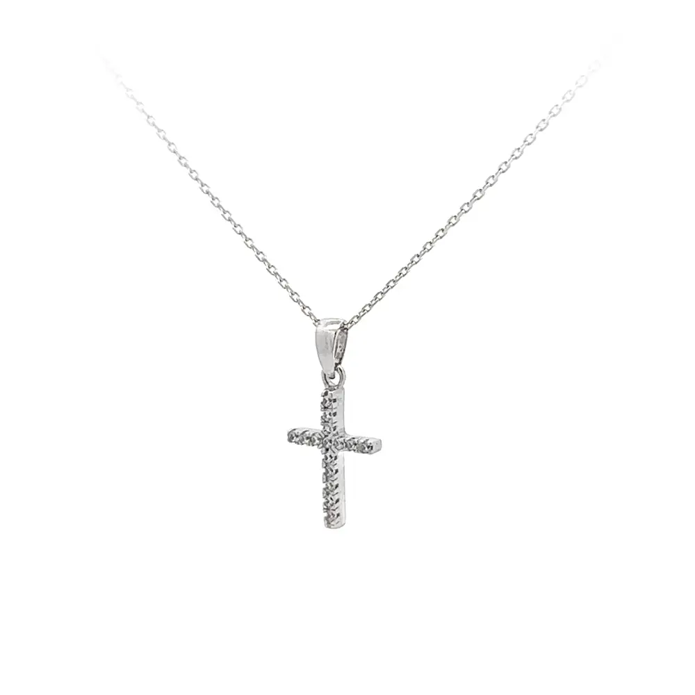 Anhänger Kreuz mit Zirkonen aus Weißgold