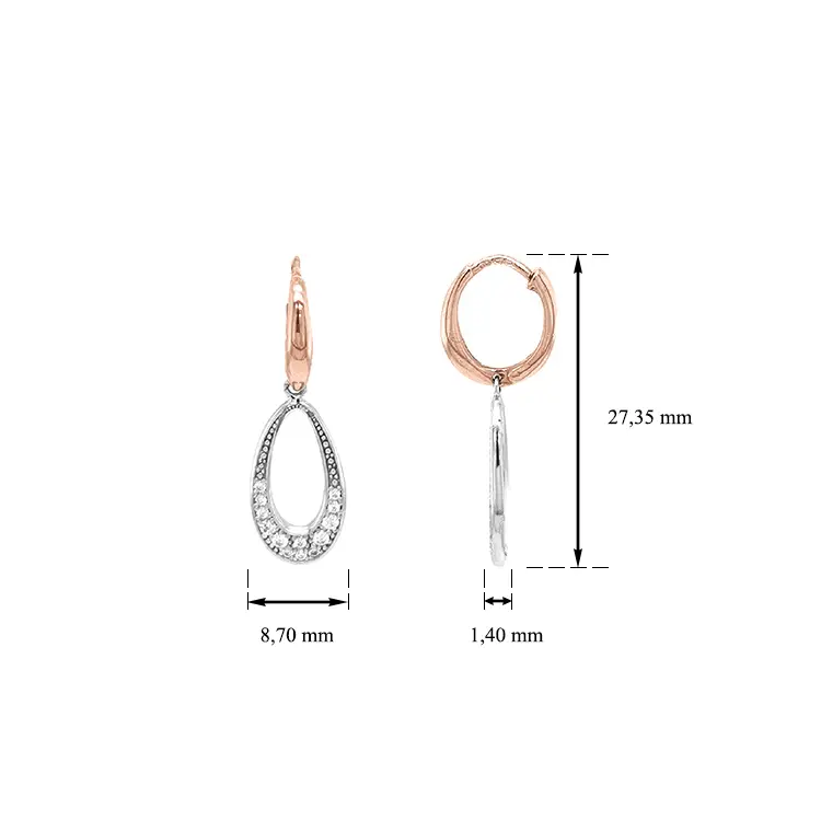 Anhänger-Ohrringe mit Zirkonen in Gold