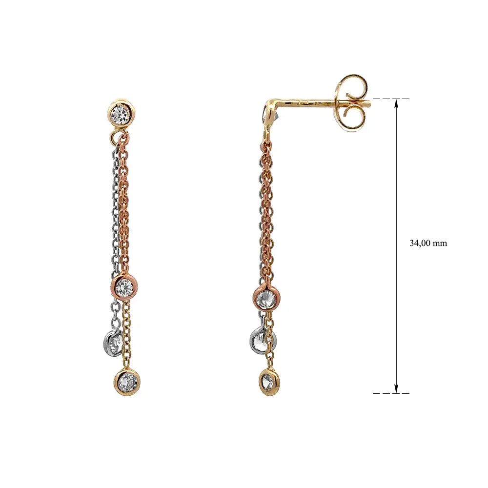 Anhänger-Ohrringe mit Zirkonen in Gold