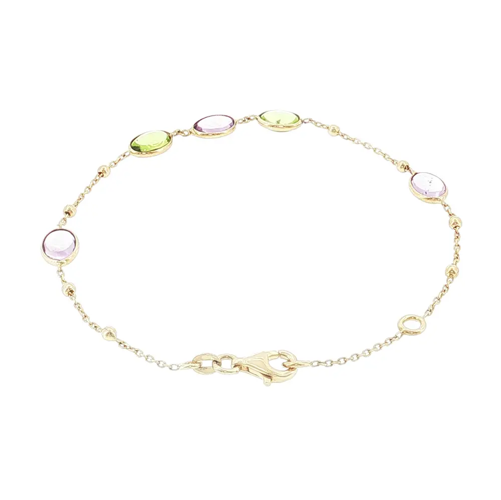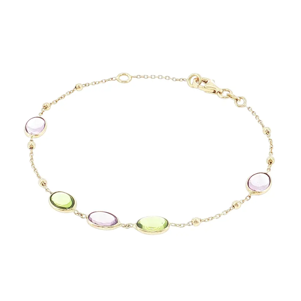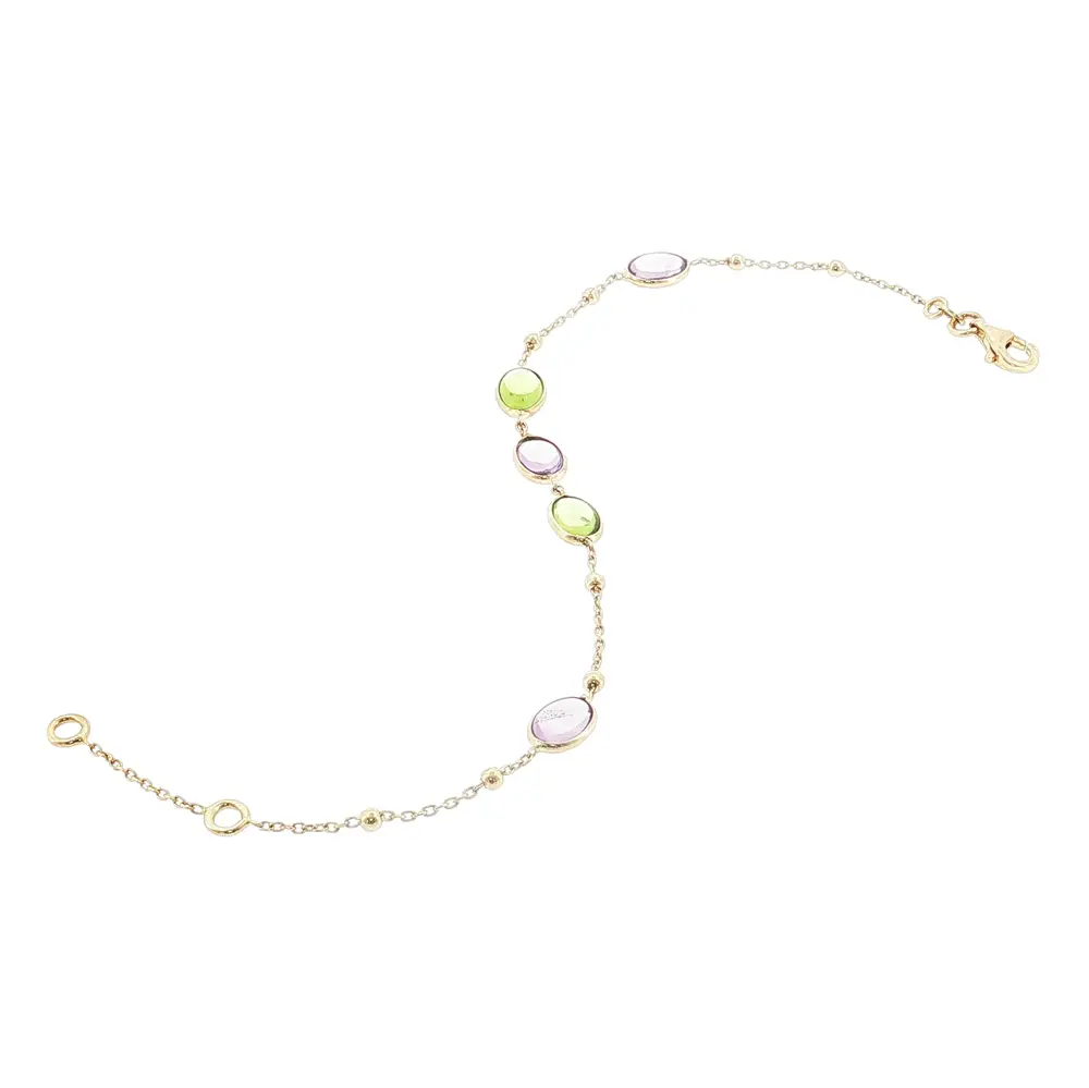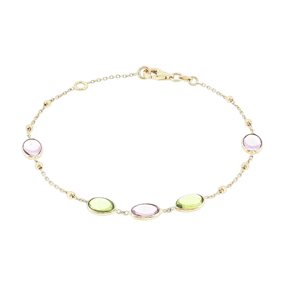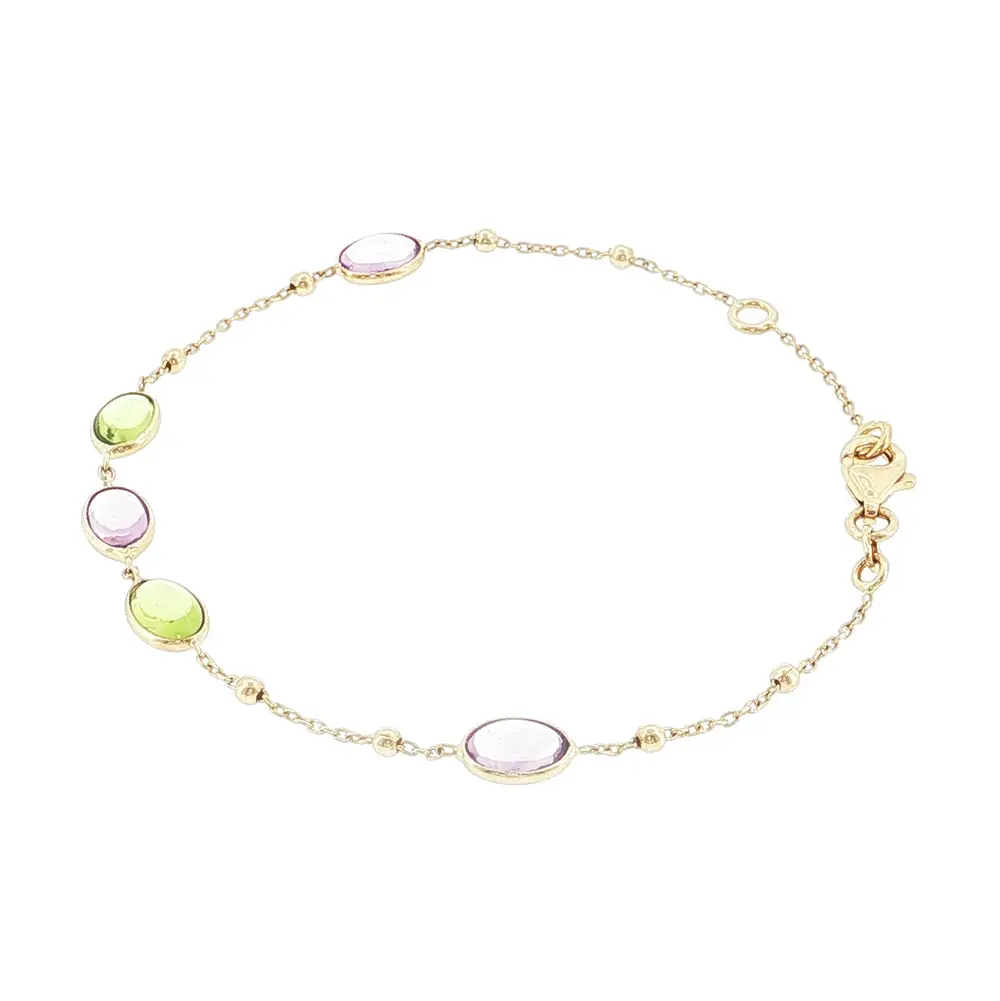 Armband aus 14 Karat Gold mit farbigen Edelsteinen und Kugeln