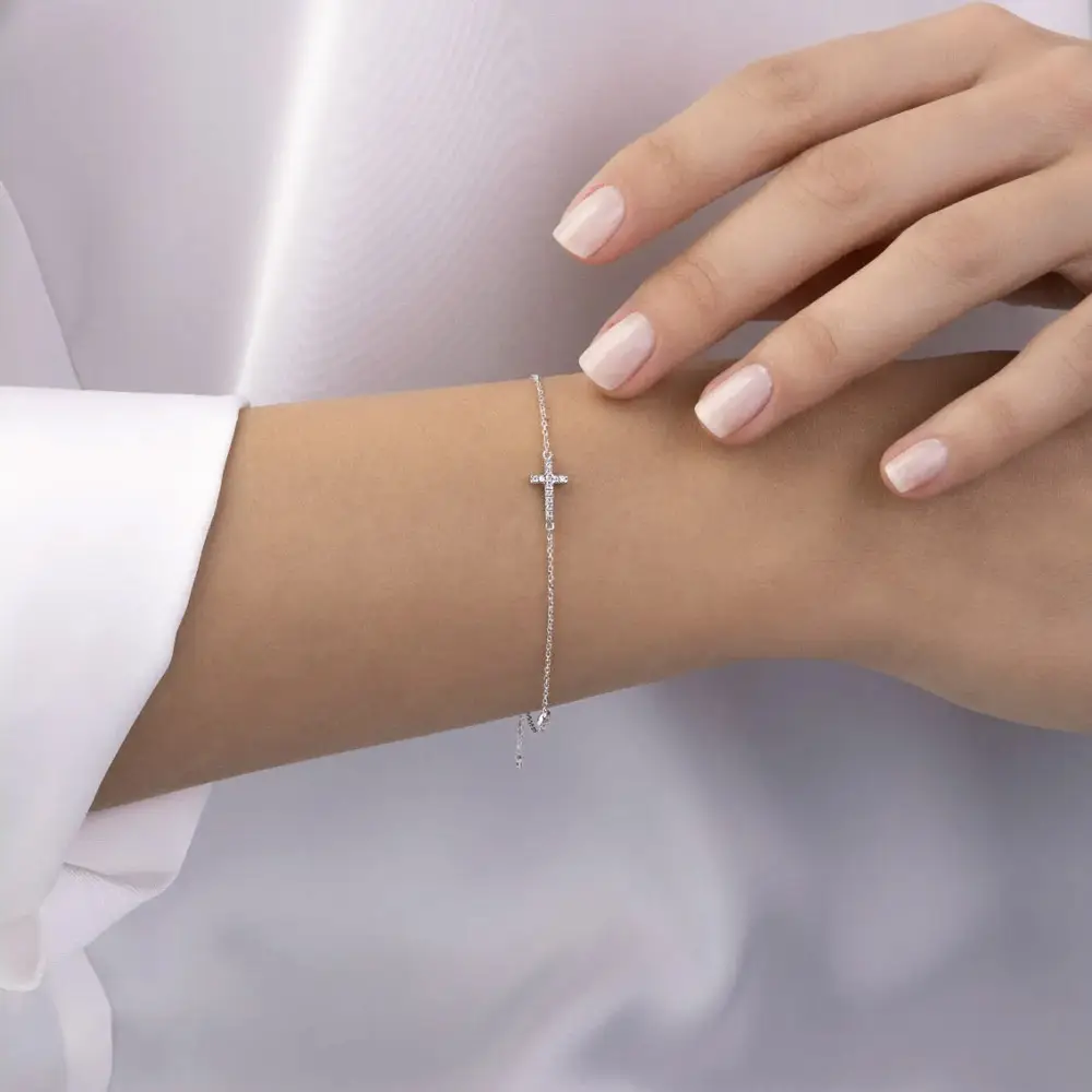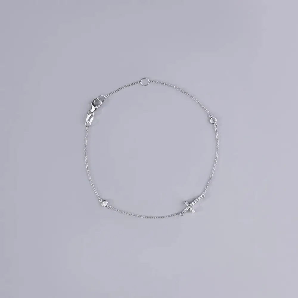 Armband mit Zirkonen mit Kreuz aus Weißgold