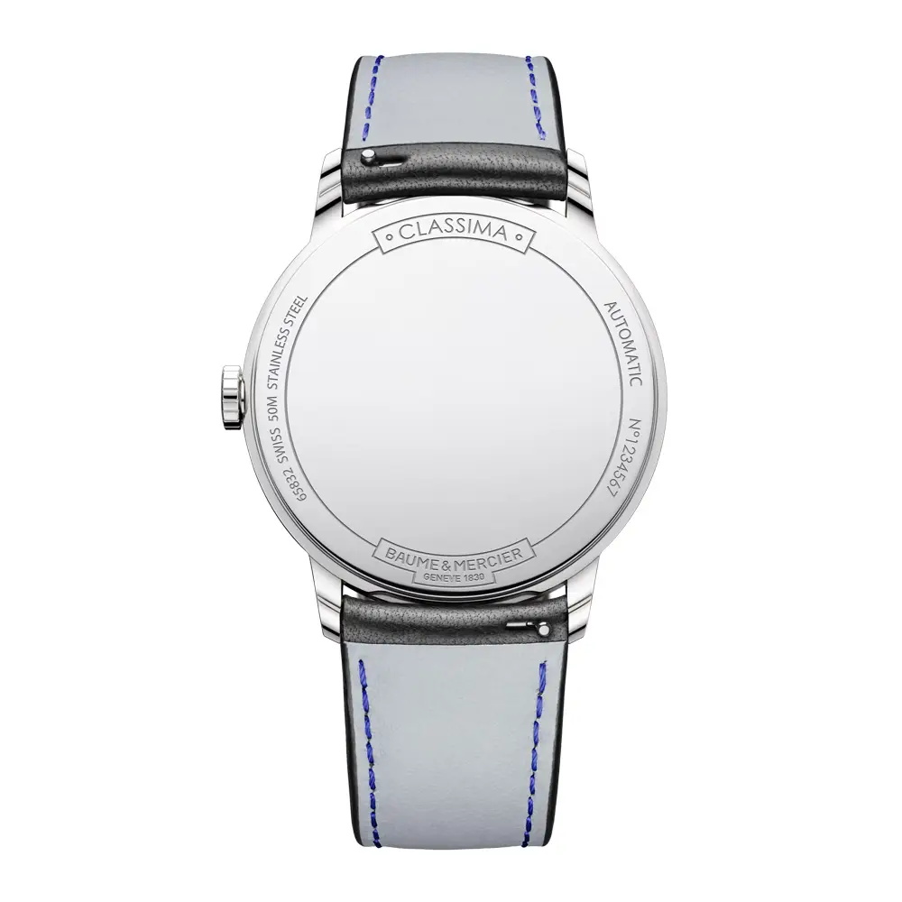 Im Inneren arbeitet das Schweizer Automatik-Kaliber BM11200 mit einer Gangreserve von rund 38 Stunden, 28.800 Halbschwingungen pro Stunde und 26 Lagersteinen. Mit Datumsanzeige bei 3 Uhr verkörpert die Uhr die Philosophie der Classima-Kollektion – Schlichtheit, Harmonie und raffinierte Eleganz.