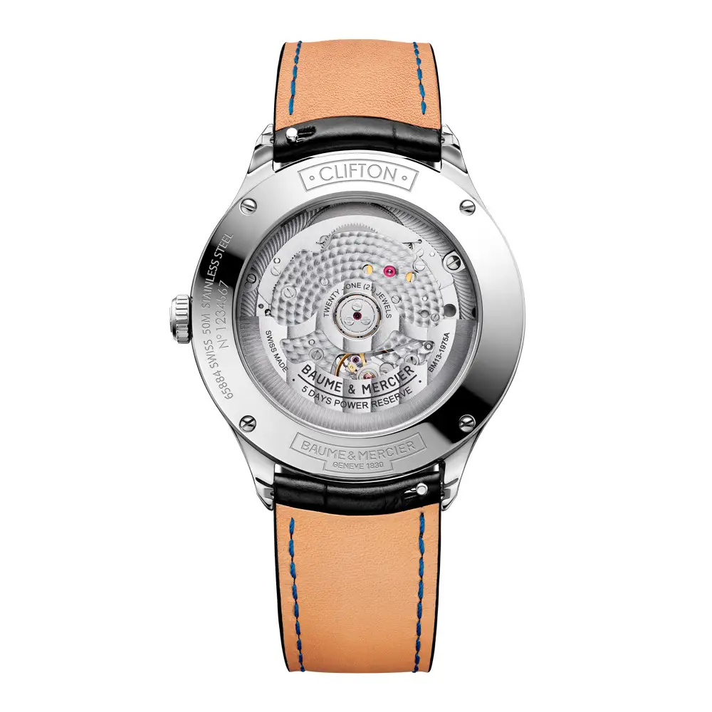 Die Clifton-Kollektion verkörpert den Geist der traditionellen Schweizer Uhrmacherkunst in Kombination mit einer modernen Ästhetik. Sie ist inspiriert von den archivierten Modellen von Baume & Mercier aus den 1940er Jahren, die in einem eleganten und zeitgenössischen Konzept wieder zum Leben erweckt werden. Die Clifton zeichnet sich durch ihre klaren Linien, ihr sanft abgerundetes Gehäuse und ihr klassisches Zifferblatt aus, was ihr einen zeitlosen und vielseitigen Charakter verleiht.