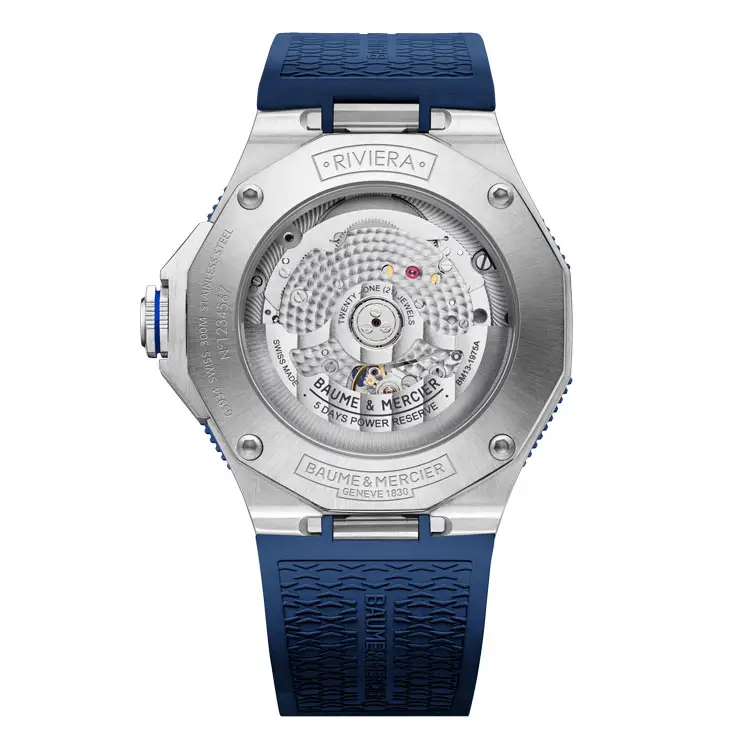 Die 1973 lancierte Kollektion Riviera von Baume & Mercier ist eine Ikone der sportlichen Eleganz. Ihre unverwechselbare 12-eckige Gehäuseform und ihr markantes Design machen sie zur idealen Wahl für alle, die eine Uhr mit Charakter suchen.