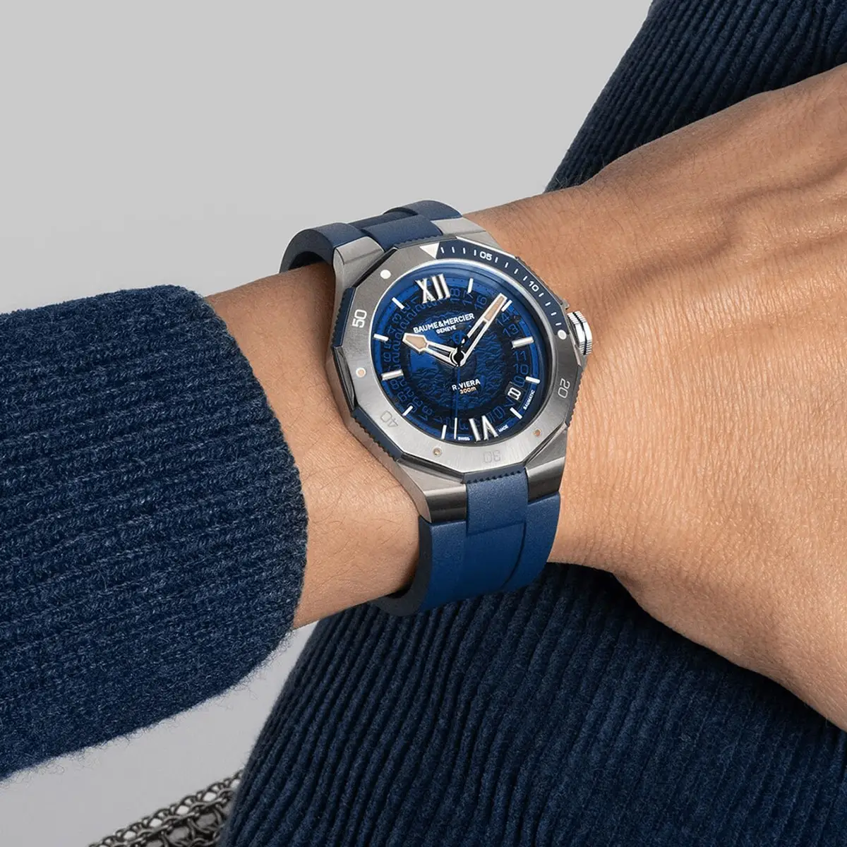 Die Riviera-Modelle kombinieren luxuriöse Materialien wie Edelstahl, Titan und Saphirglas mit Schweizer Präzisionsuhrwerken, darunter das Hochleistungskaliber Baumatic. Die Palette umfasst klassische Dreizeiger-Modelle, Chronographen und Skelette - und das Schnellwechselsystem für die Armbänder macht es einfach, die Uhr an den eigenen Stil anzupassen. Riviera steht für Eleganz, Freiheit und Qualität.