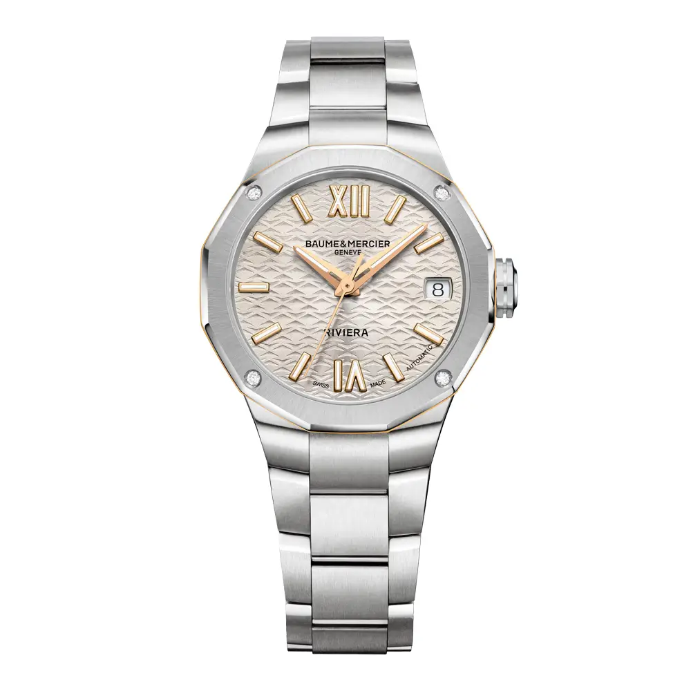 Die 1973 lancierte Kollektion Riviera von Baume & Mercier ist eine Ikone der sportlichen Eleganz. Ihre unverwechselbare 12-eckige Gehäuseform und ihr markantes Design machen sie zur idealen Wahl für alle, die eine Uhr mit Charakter suchen.