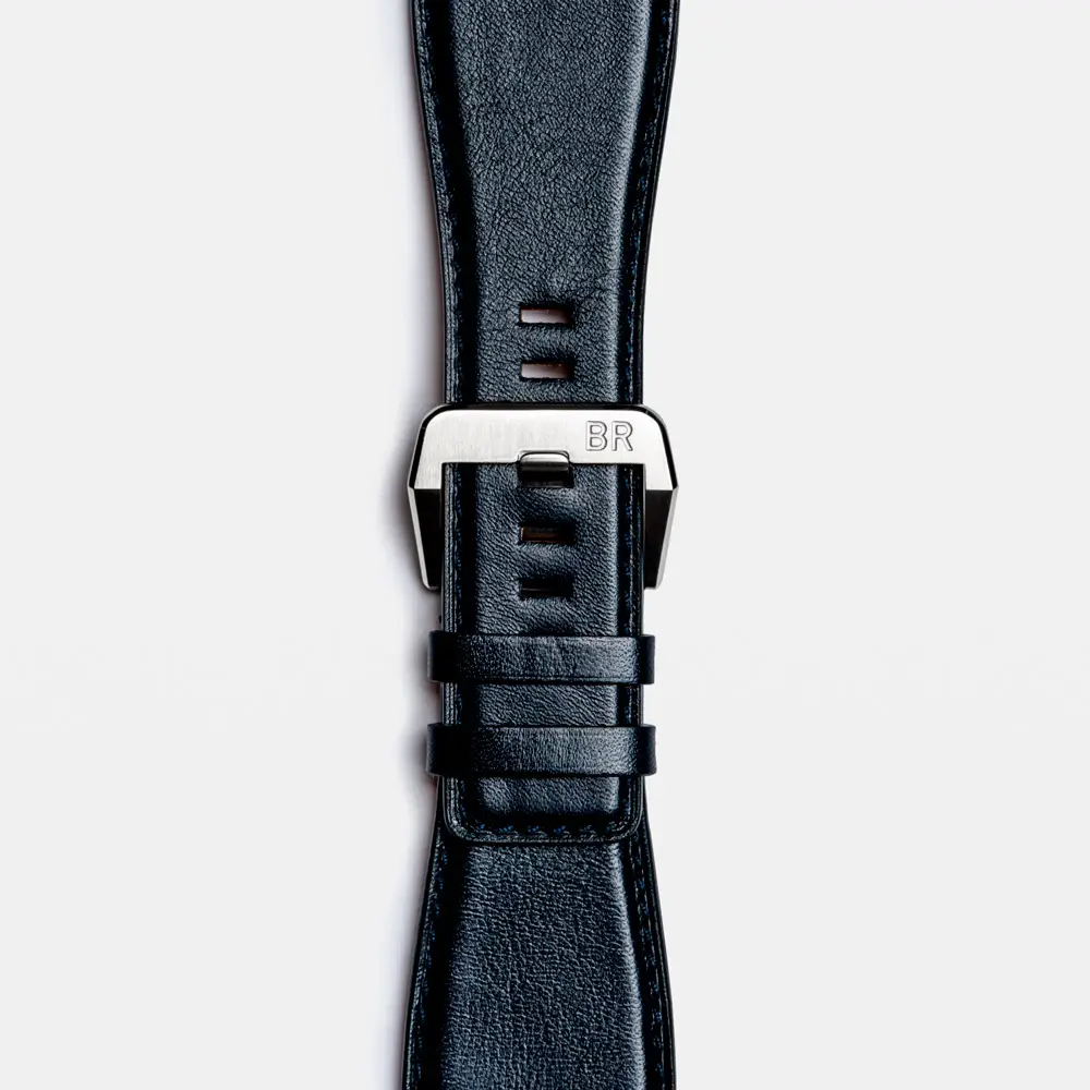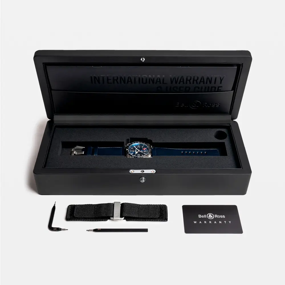 Im Inneren arbeitet das automatische Kaliber BR-CAL.303 mit einer Gangreserve von etwa 42 Stunden, das Zuverlässigkeit und Präzision garantiert. Mit blauem Lederarmband und Faltschließe sowie 100 m (10 ATM) Wasserdichtigkeit ist die BR 03-93 GMT Blue der ideale Begleiter für alle, die Funktionalität, Stil und Abenteuerlust vereinen möchten.