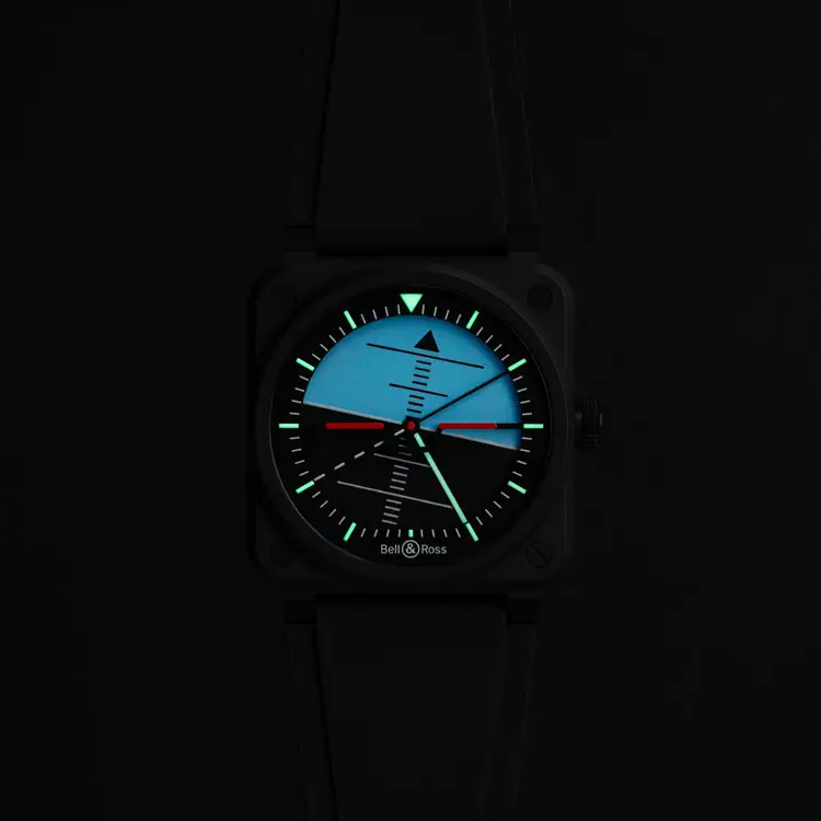Die Bell & Ross BR 03 Horizon ist eine moderne Hommage an die Luftfahrtinstrumente, inspiriert vom künstlichen Horizont im Cockpit. Sie vereint technische Präzision, minimalistisches Design und die ikonische quadratische Architektur der BR-03-Kollektion zu einem echten Instrument für Liebhaber der Fliegerei.