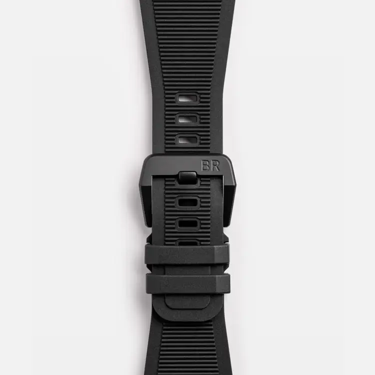 Im Inneren arbeitet das Automatikwerk BR-CAL.302-1 mit 54 Stunden Gangreserve, das Präzision und Zuverlässigkeit gewährleistet. Das schwarze Kautschukarmband mit Dornschließe sorgt für Komfort und Strapazierfähigkeit. Mit Wasserdichtigkeit bis 200 m (20 bar) steht die BR 03 Diver Full Lum Ceramic für Innovation, Leistung und mutiges Design – perfekt für Taucher und Liebhaber technischer Exzellenz.