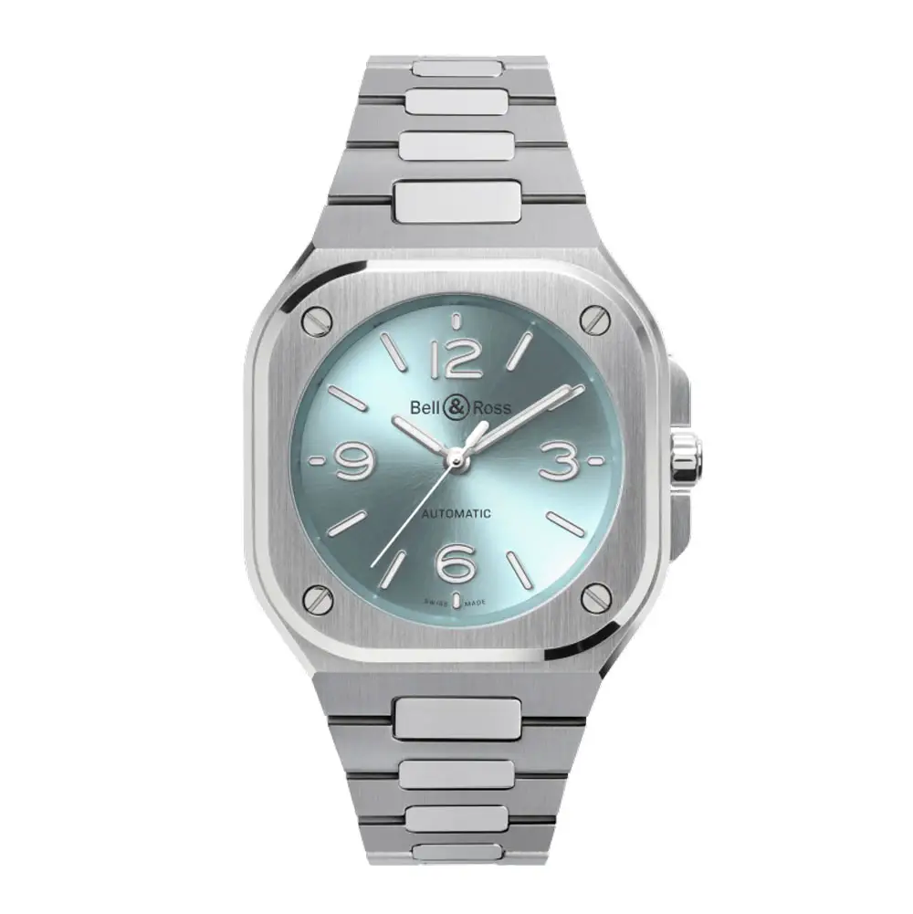 Die Bell & Ross BR 05 Blue Steel (BR05A-S-BU-ST/SST) verkörpert modernen urbanen Stil und robuste Eleganz. Ihr quadratisches 40-mm-Gehäuse mit integriertem Armband kombiniert polierte und satinierte Oberflächen und greift damit auf das ikonische, von Luftfahrtinstrumenten inspirierte Industriedesign der Marke zurück.