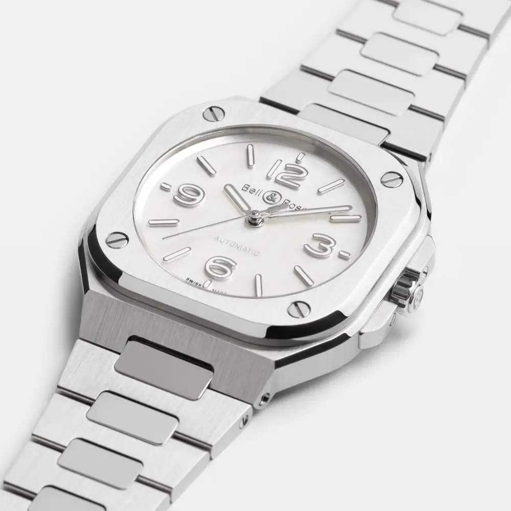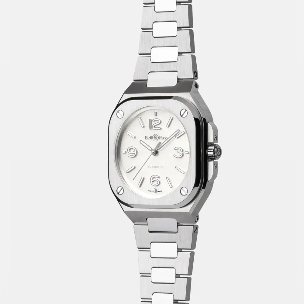 Die Kollektion Bell & Ross BR 05 schafft die perfekte Balance zwischen urbaner Eleganz und dem charakteristischen technischen Design der Marke. Im Gegensatz zu den robusten Luftfahrtmodellen der BR 03 ist die BR 05 auf eine zivilere Form abgestimmt, ohne dabei ihre unverwechselbare Identität zu verlieren - das quadratische Gehäuse mit abgerundeten Ecken und das integrierte Armband bilden ein glattes, kompaktes Ensemble, das sich mit beispiellosem Komfort an das Handgelenk schmiegt.