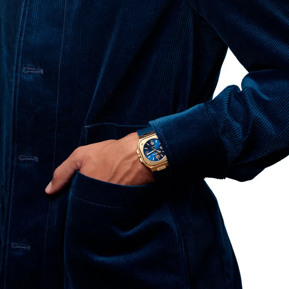 Im Inneren arbeitet das automatische Kaliber BR-CAL.321 mit einer Gangreserve von etwa 42 Stunden, das Präzision und Zuverlässigkeit garantiert. Mit einem integrierten Armband aus 18 K Roségold mit Faltschließe und einer Wasserdichtigkeit von 100 m (10 ATM) ist die Bell & Ross BR 05 Blue Gold ein Symbol für modernen Luxus, Eleganz und meisterhafte Uhrmacherkunst.