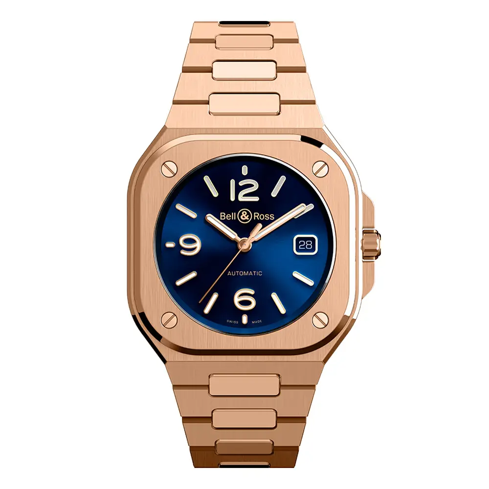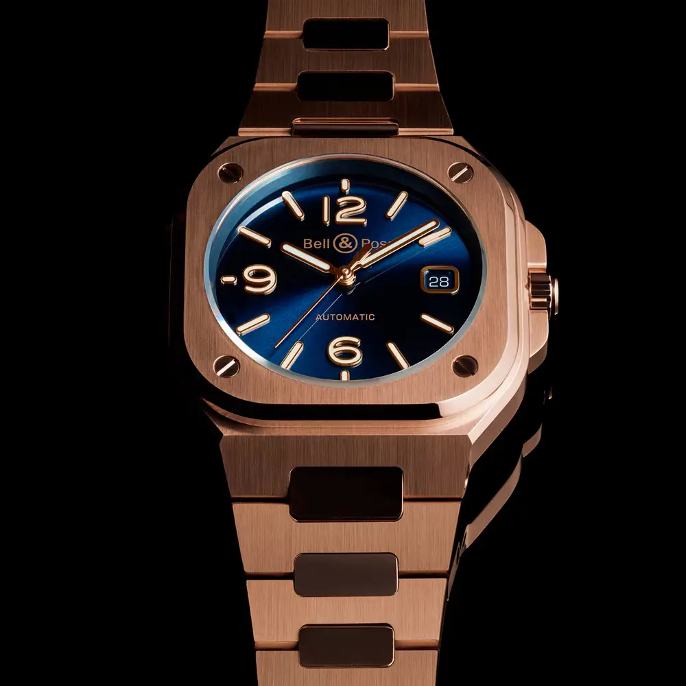 Die Bell & Ross BR 05 Blue Gold (Ref. BR05A-BLU-PG/SPG) verkörpert die luxuriöseste Interpretation der ikonischen BR-05-Kollektion. Sie vereint modernes, architektonisch inspiriertes Design mit der zeitlosen Eleganz von 18-karätigem Roségold und richtet sich an Kenner, die höchste Ansprüche an Stil und Handwerkskunst stellen.