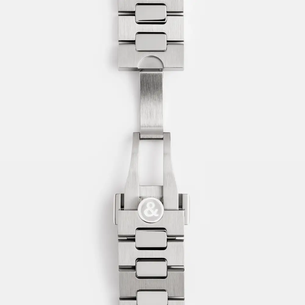 Das 42 mm große Edelstahlgehäuse mit integriertem Design und entspiegeltem Saphirglas bietet Robustheit und elegante Ausstrahlung. Das metallisch grüne Zifferblatt verleiht der Uhr eine einzigartige Note, während die Edelstahllünette und feine Details ihren technischen Charakter unterstreichen.
