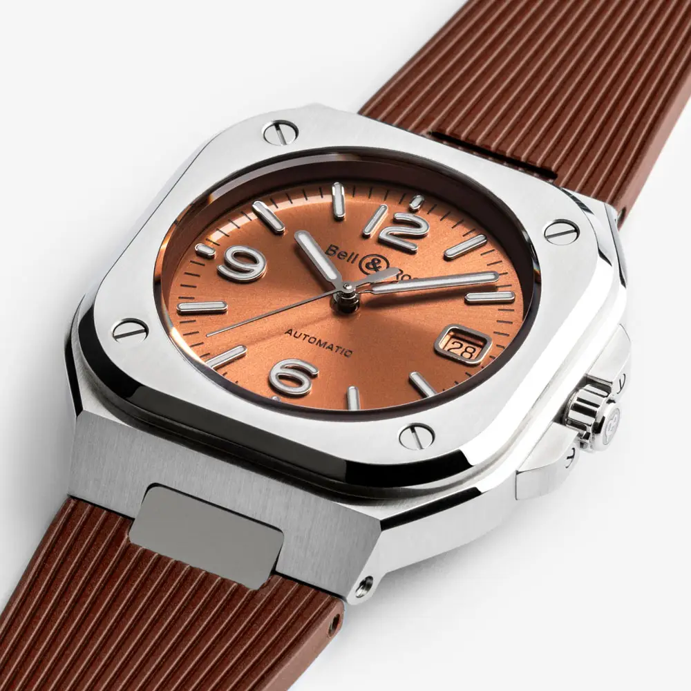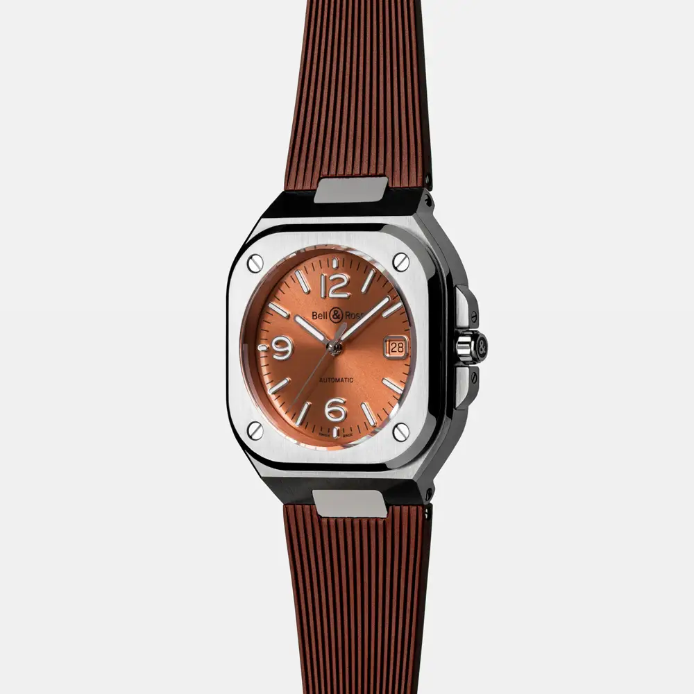 Die Bell & Ross BR 05 Copper Brown (Ref. BR05A-BR-ST/SRB) vereint urbane Eleganz und technische Präzision in einem harmonischen Design. Das warme kupferbraune Zifferblatt mit Sonnenschliff verleiht der Uhr einen unverwechselbaren Charakter, während das Edelstahlgehäuse ihre zeitlose Ausstrahlung betont.
