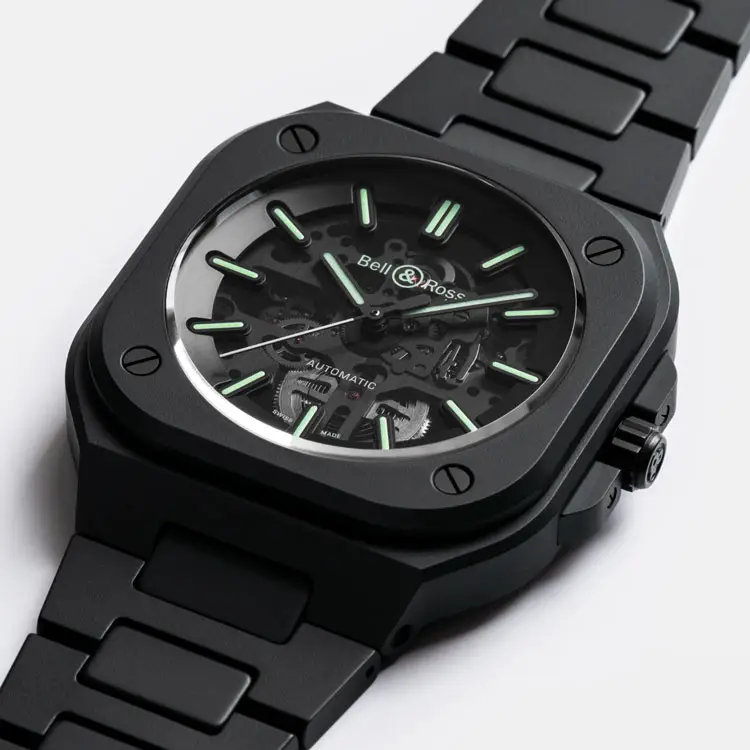 Die BR 05-Modelle werden in La Chaux-de-Fonds in der Schweiz hergestellt und kombinieren Präzisionsmechanik mit Automatikwerken und luxuriösen Materialien wie Edelstahl, Roségold, skelettierten Ausführungen und Keramik. Es gibt auch Varianten mit integriertem Stahlband, Kautschukarmband oder diamantbesetzten Details für einen noch markanteren Look.