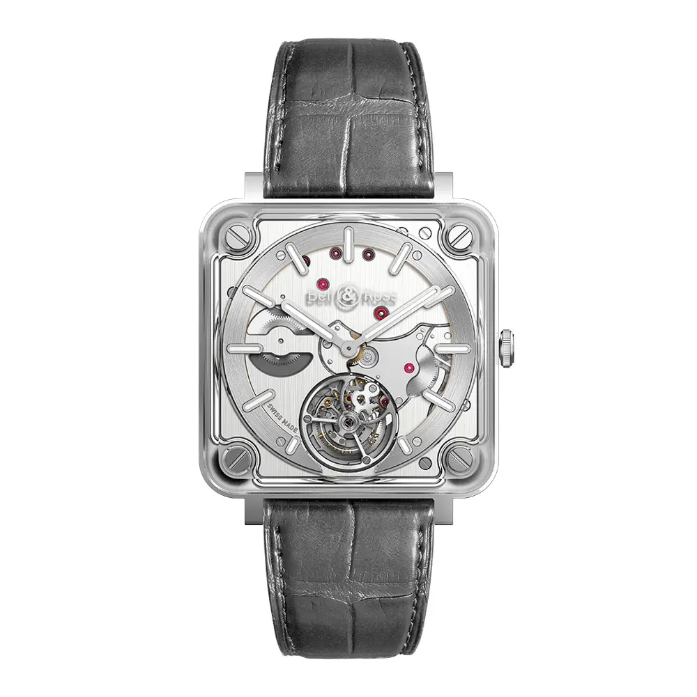 Die Exklusivität dieses Modells wird durch die limitierte Auflage von nur 99 Exemplaren unterstrichen. Abgerundet wird die Uhr durch ein graues Alligatorlederarmband mit Edelstahlfaltschließe, das perfekt mit dem technischen Design harmoniert. Die BR-X2 Tourbillon Micro-Rotor ist ein Symbol der modernen Haute Horlogerie, das transparente Architektur, technische Brillanz und exklusive Sammelbarkeit vereint.