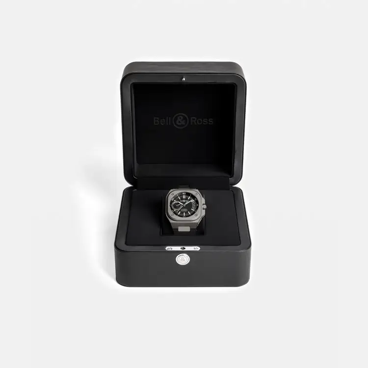 Die Bell & Ross BR-X5 Black Titanium vereint futuristisches Design, technische Präzision und hohen Tragekomfort in perfekter Balance. Sie basiert auf der ikonischen Formensprache von Bell & Ross und nutzt Titan – ein Material, das für seine Leichtigkeit, Robustheit und Hautverträglichkeit geschätzt wird.