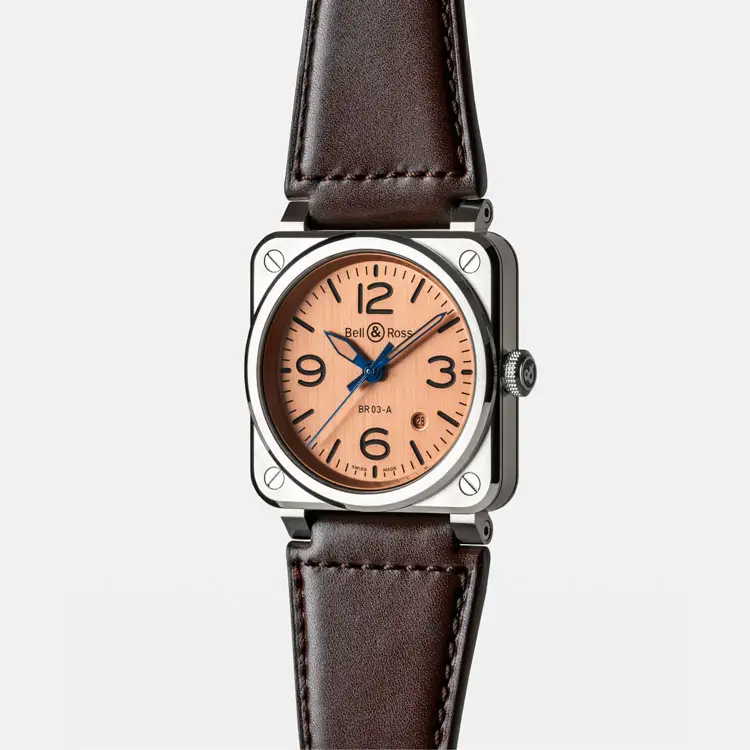 Die Bell & Ross BR 03 Copper vereint industrielles Design mit warmer Eleganz und besticht durch ihr markantes kupferfarbenes Zifferblatt mit poliertem Finish. Diese Uhr richtet sich an Herren, die Originalität, zeitlosen Stil und Charakter schätzen.
