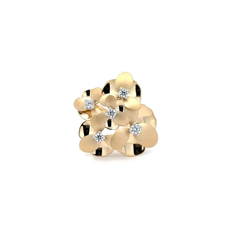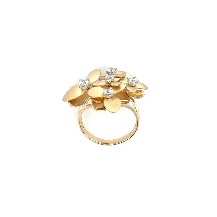 Blumenring aus Gelbgold mit feinem Zirkon-Glanz
