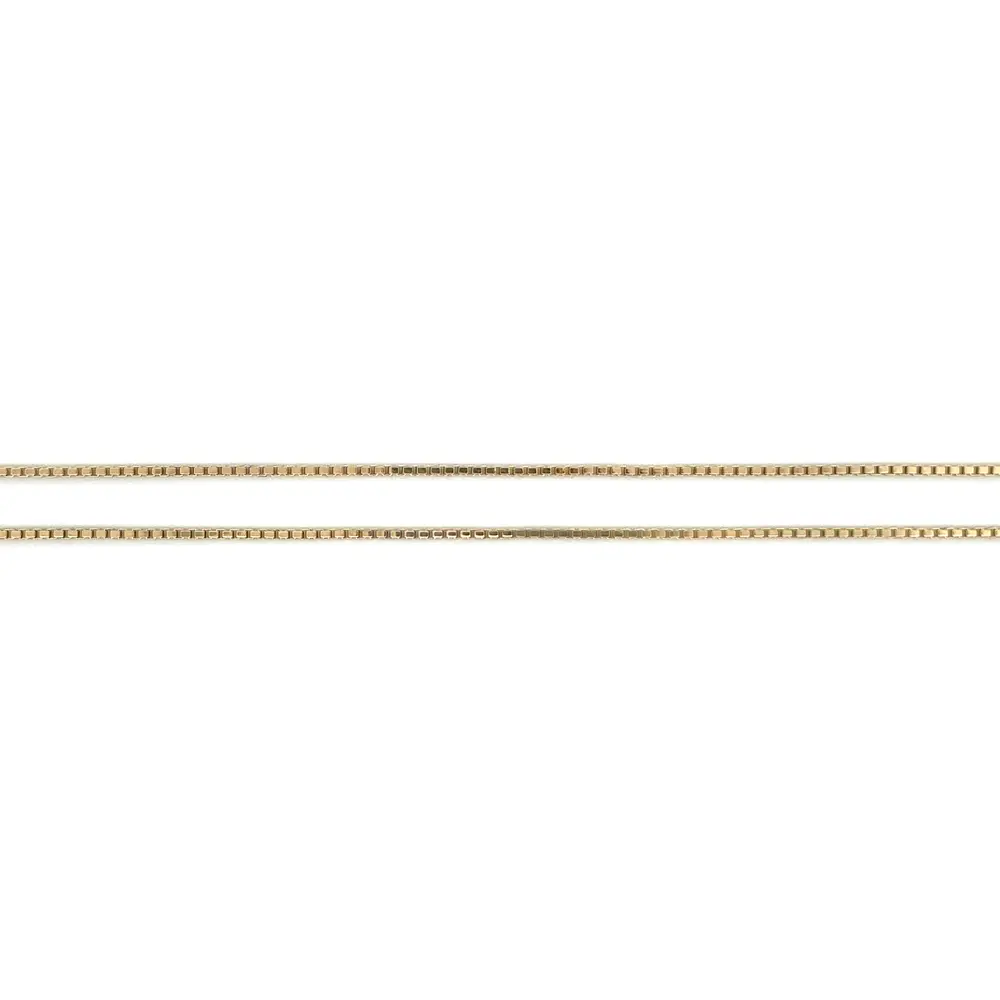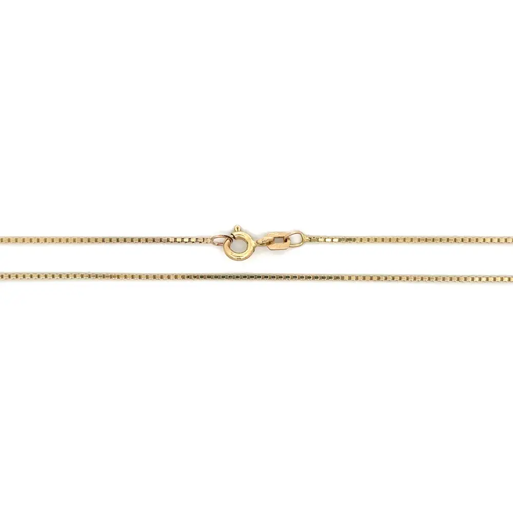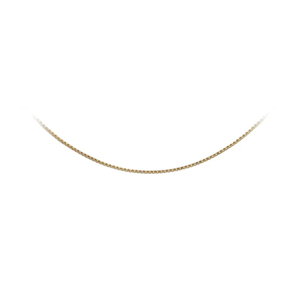 Diese feine Boxkette ist aus 14 Karat Gelbgold (585/1000) gefertigt und überzeugt durch ihr klares, zeitloses Design. Mit einer Länge von 50 cm und einer Breite von 0,90 mm eignet sie sich sowohl zum alleinigen Tragen als auch als elegante Ergänzung zu einem Anhänger.