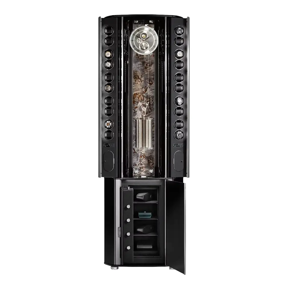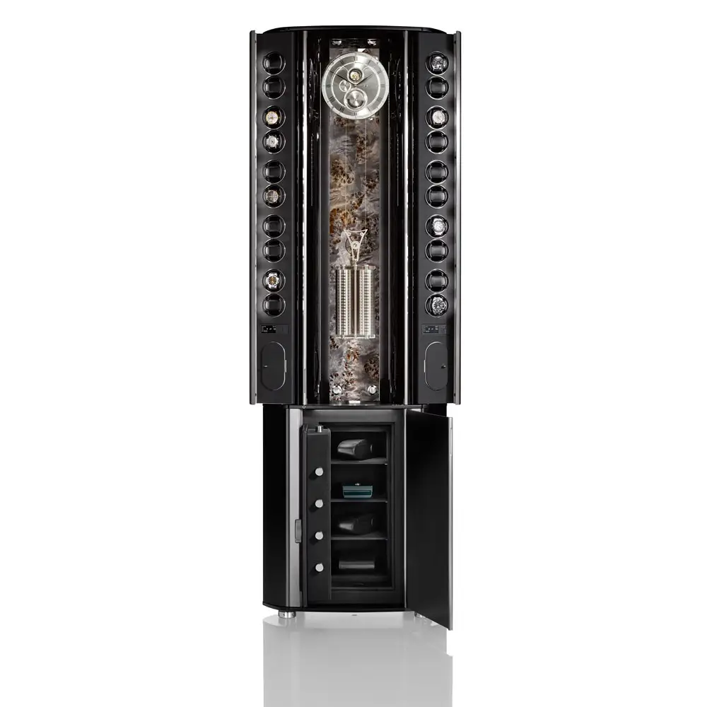 Die Grande Infinity kann ganz nach den Wünschen des Kunden gestaltet werden - es stehen verschiedene Oberflächen, Farboptionen und Innenausstattungen zur Auswahl. Kombiniert mit einem geräuschlosen, automatischen Öffnungsmechanismus und einem fortschrittlichen elektronischen Schloss wird er nicht nur zu einem Sicherheitsmerkmal, sondern auch zu einer Ikone des Möbeldesigns.