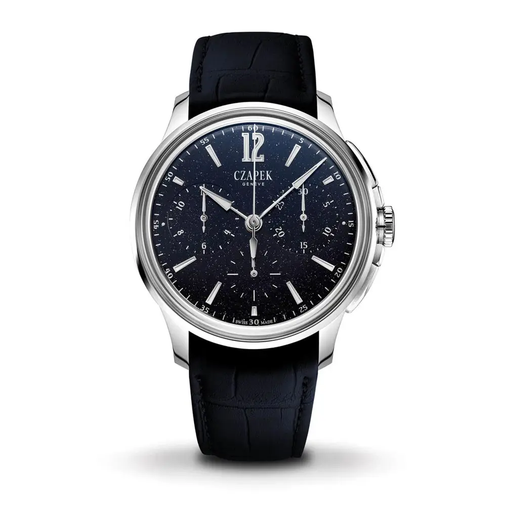 Die Kollektion Faubourg de Cracovie ist eine Hommage an die technische Exzellenz und die sportliche Eleganz, die die Marke Czapek & Camp; Cie meisterhaft mit der traditionellen Uhrmacherkunst verbindet. Die Modelle sind mit dem Spitzen-Chronographenwerk SXH3 ausgestattet, das in Zusammenarbeit mit der Vaucher Manufacture Fleurier entwickelt wurde, und bieten eine Gangreserve von bis zu 65 Stunden.