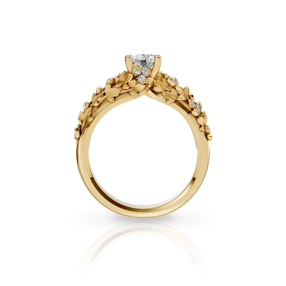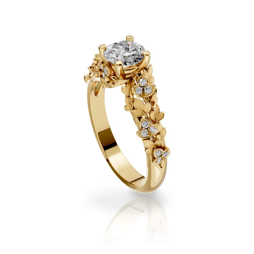 Der Mittelstein in Qualität F / VVS1 ist mit einem GIA-Zertifikat versehen. Zusätzlich verfügt der Ring über weitere Diamanten mit ca. 0,11 ct, die das Design dezent ergänzen.
