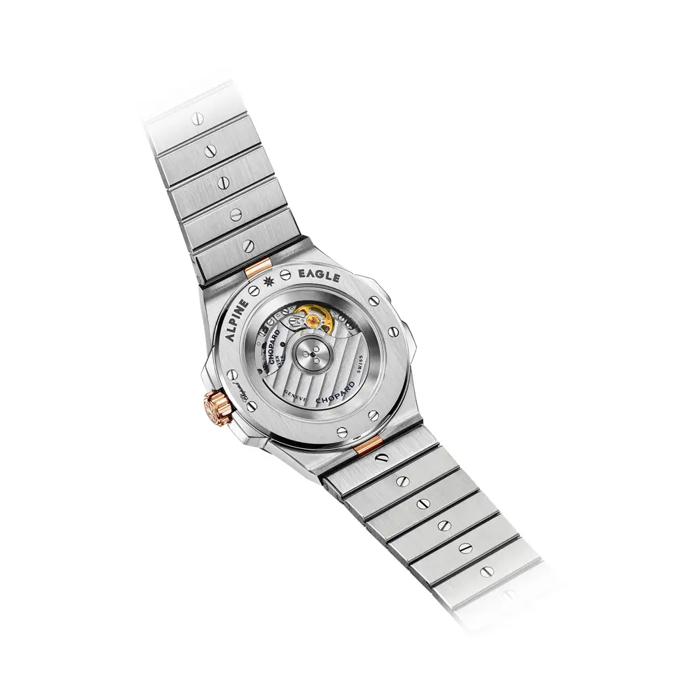 Die Alpine Eagle Uhren vereinen Sportlichkeit, Raffinesse und edle Materialien. Die Gehäuse und Uhrwerke sind aus der exklusiven, direkt von Chopard entwickelten Lucent Steel™-Legierung gefertigt. Dieses recycelte und hypoallergene Material zeichnet sich durch seinen außergewöhnlichen Glanz und seine mit Gold vergleichbare Härte aus.