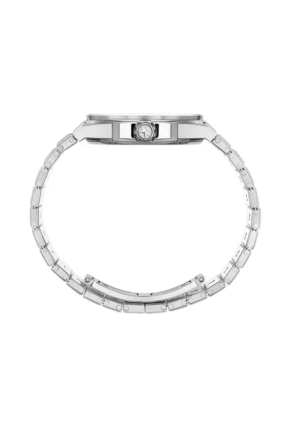 Das runde Gehäuse aus Edelstahl mit einem Durchmesser von 33 mm wird durch ein integriertes silberfarbenes Edelstahlarmband mit Faltschließe ergänzt, das höchsten Tragekomfort und sicheren Halt gewährleistet. Das blaue Zifferblatt mit seiner feinen Struktur, die an die Iris eines Adlers erinnert, bietet nicht nur eine markante Optik, sondern auch hervorragende Ablesbarkeit dank kontrastreicher Zeiger und Indizes.