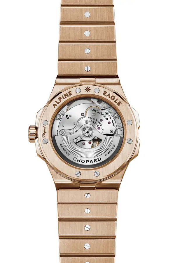 Im Inneren arbeitet das hauseigene Automatikwerk Chopard 01.01-C, zertifiziert als COSC-Chronometer, mit 60 Stunden Gangreserve und einer Frequenz von 28.800 Halbschwingungen pro Stunde (4 Hz) – ein Symbol für Präzision und Zuverlässigkeit.