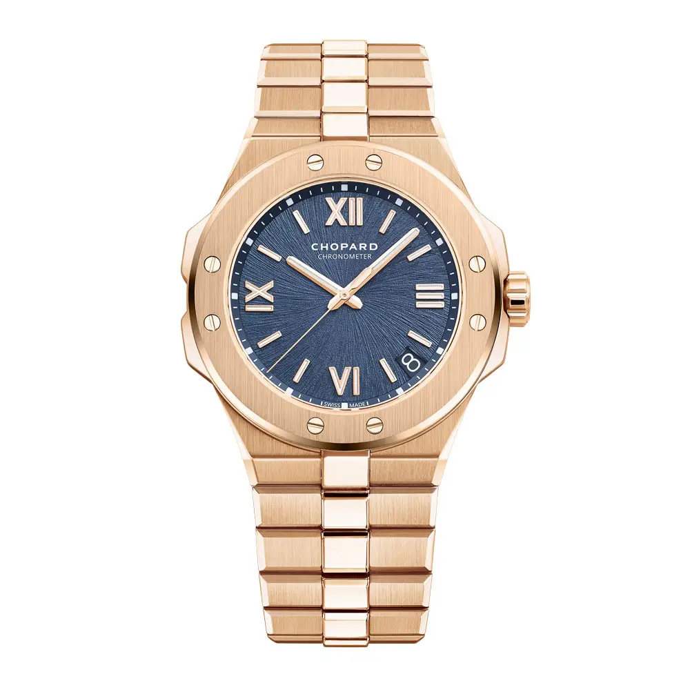 Die Chopard Alpine Eagle 295363-5001 verkörpert höchsten Luxus und technische Eleganz – eine markante Uhr, die Kraft, Raffinesse und Innovation vereint. Inspiriert von der Majestät der Alpen und dem durchdringenden Blick eines Adlers, besteht dieses exklusive Modell vollständig aus 18kt Roségold.