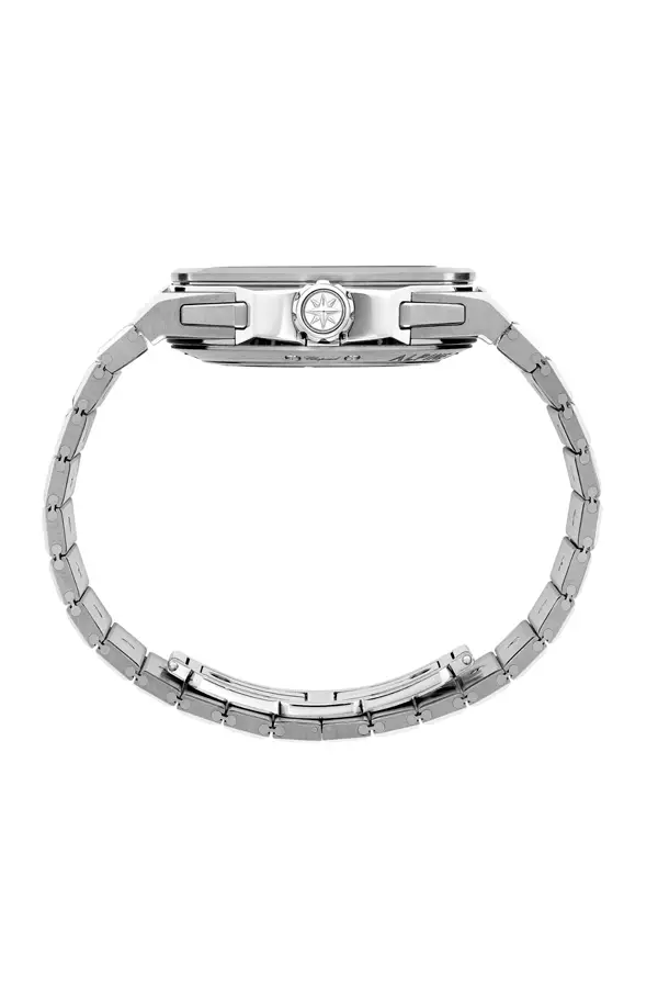 Das Herzstück ist das blaue Zifferblatt mit einer Textur, die an alpine Gletscher erinnert. Drei Hilfszifferblätter, leuchtende Zeiger und Indexe sowie ein Datumsfenster sorgen für eine harmonische Kombination aus Funktionalität und Stil. Das Modell wird durch ein silberfarbenes Edelstahlarmband mit Faltschließe komplettiert.