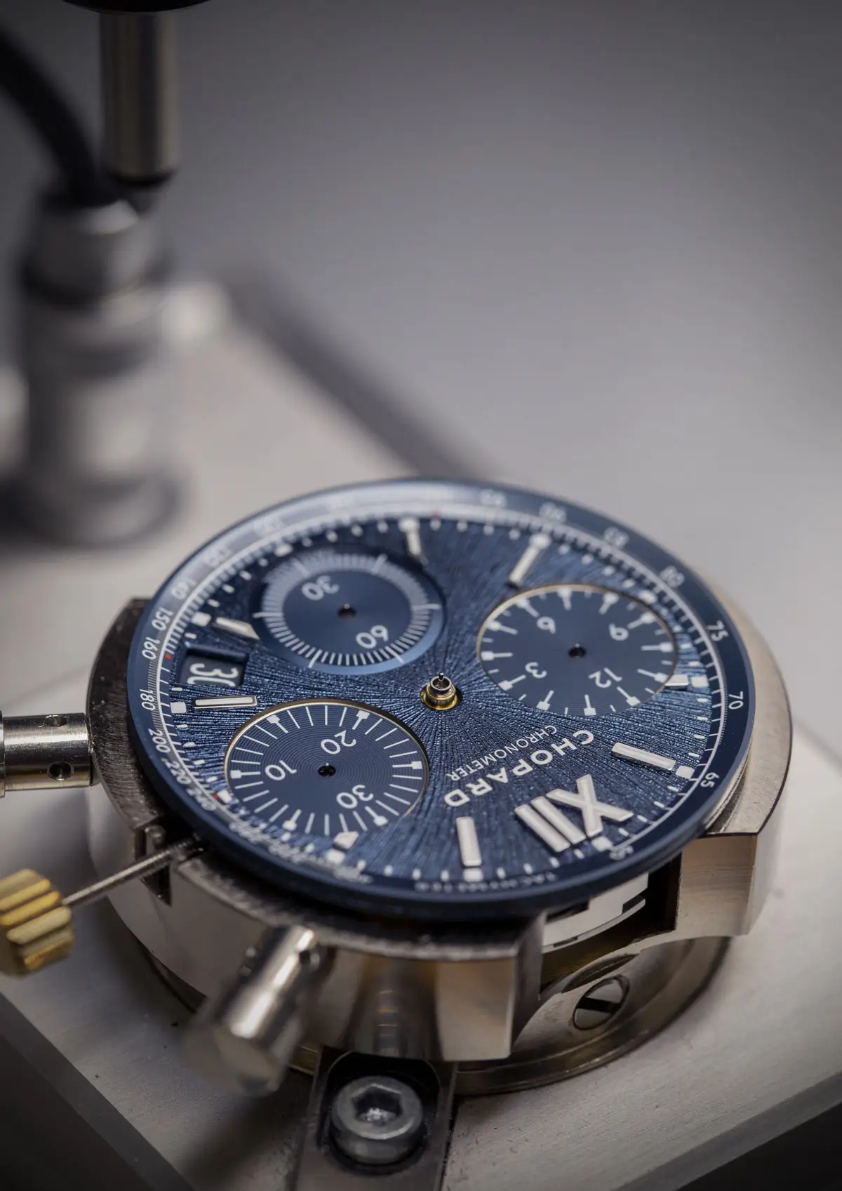 Im Inneren arbeitet das präzise Chopard 03.05-C Automatikkaliber, zertifiziert als COSC-Chronometer, mit 60 Stunden Gangreserve, 28.800 Halbschwingungen pro Stunde (4 Hz) und 45 Lagersteinen.