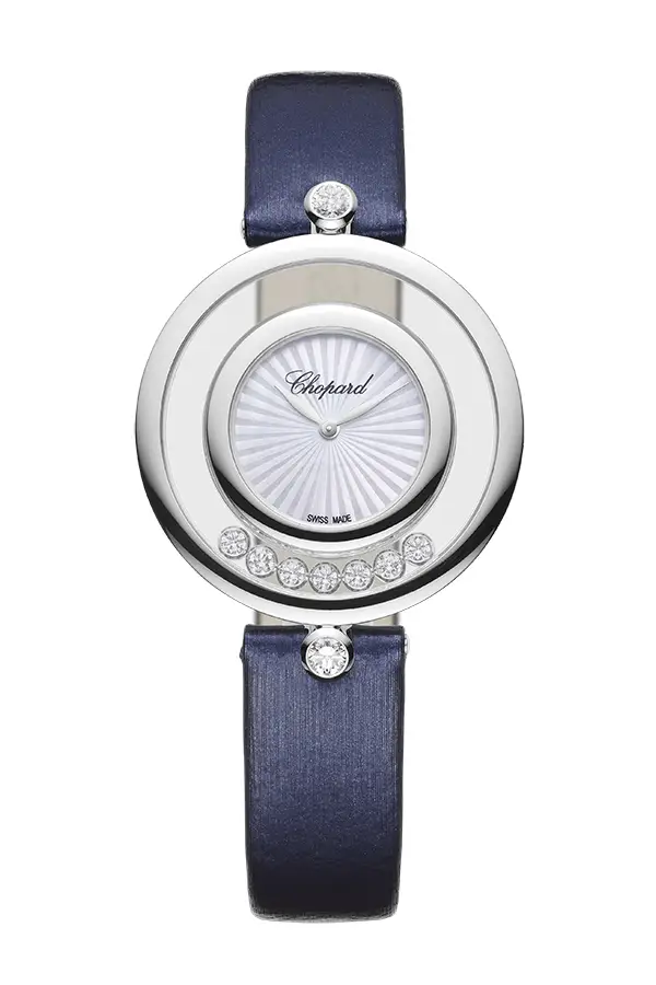 Die Happy-Diamonds-Kollektion vonChopard ist eine Ikone für Kreativität, Freude und Freiheit im Design. Seit ihrer Einführung im Jahr 1976 hat sie ein revolutionäres Konzept eingeführt: frei bewegliche Diamanten zwischen zwei Saphirgläsern, die bei jeder Bewegung des Handgelenks über das Zifferblatt tanzen.
