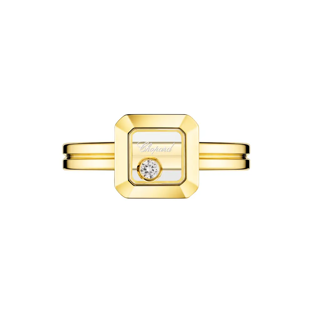Der Chopard Happy Diamonds Icons 82A114‑0110 ist ein eleganter Damenring aus der ikonischen Happy Diamonds‑Kollektion, die für Verspieltheit, Freiheit und Lebensfreude steht. Gefertigt aus 18 kt Gelbgold, präsentiert er einen frei beweglichen Brillanten von 0,05 ct, der zwischen zwei Saphirgläsern eingefasst ist. Dank dieses einzigartigen Designs „tanzt“ der Diamant bei jeder Bewegung und reflektiert das Licht auf faszinierende Weise.