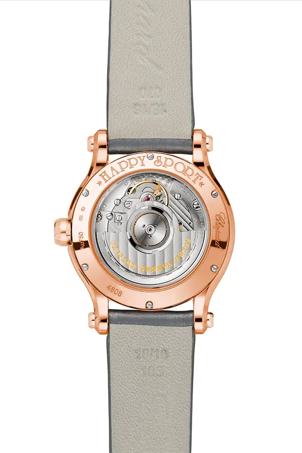 Die Chopard Happy Sport 274808-5012 verkörpert modernen Luxus, feminine Eleganz und schweizerische Präzision. Dieses außergewöhnliche Modell aus der Happy Sport-Kollektion vereint verspielten Geist und edle Raffinesse, betont durch 18 K Roségold und frei bewegliche Diamanten zwischen zwei Saphirgläsern – das ikonische Merkmal der Kollektion.