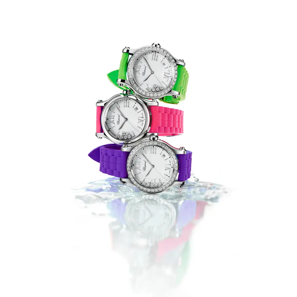 Happy Sport steht für eine harmonische Mischung aus verspielter Eleganz, Schweizer Uhrmacherpräzision und Schmuckhandwerk - Uhren, die die Stärke, den Stil und die Finesse der modernen Frau widerspiegeln.