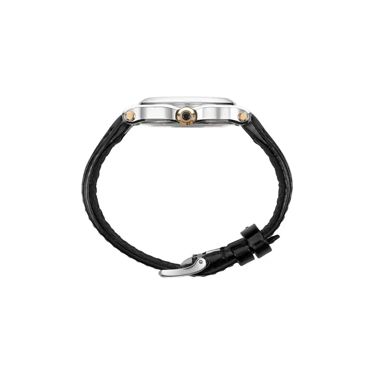 Mit einer Wasserdichtigkeit von 3 ATM / 30 m sind die Uhren ideal für den Alltag, z. B. beim Händewaschen. Die Lünette aus Stahl unterstreicht das minimalistische Design. Das schwarze Armband aus Alligatorleder liefert komfortables Tragegefühl und ist mit einer Dornschließe versehen, die sicheren Halt gewährleistet.