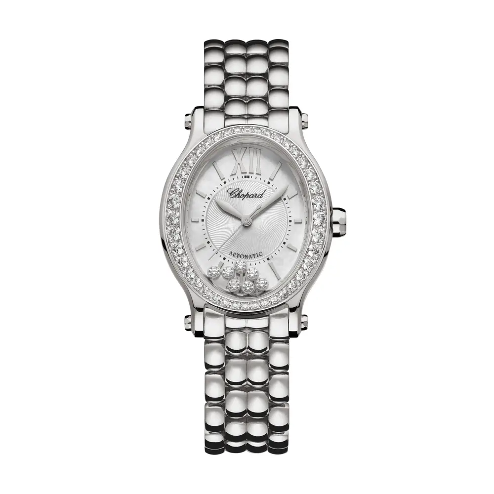Die Chopard Happy Sport Oval 278602-3004 steht für feminine Raffinesse und moderne Eleganz. Ihr ovales Gehäuse (29 x 31 mm) verleiht der legendären Happy-Sport-Kollektion eine sanfte, außergewöhnliche Note.