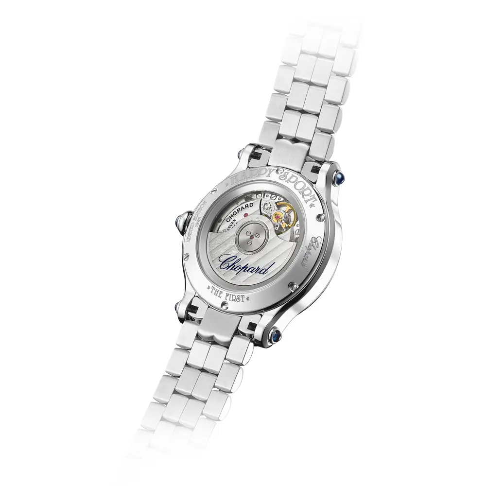 Die 1993 lancierte Happy Sport war das erste Uhrenmodell, das Diamanten mit einem Gehäuse aus Edelstahl kombinierte. Bis heute ist sie eine der kultigsten und begehrtesten Uhren in der Welt des Luxus und des Schmucks.