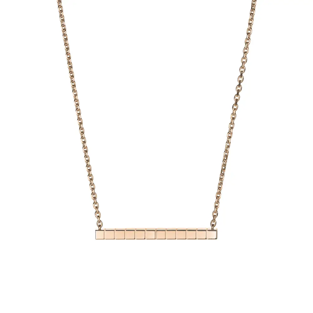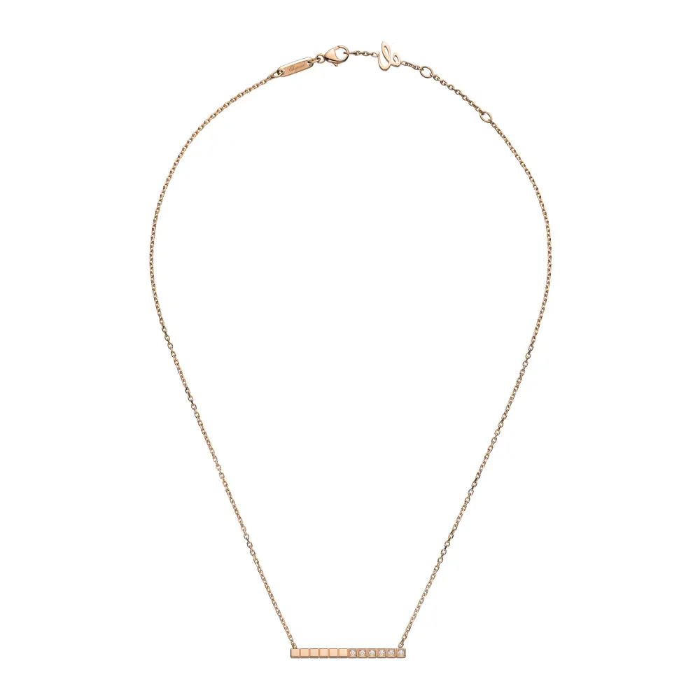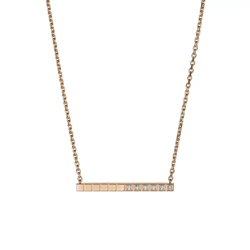 Die Chopard Ice Cube 817702-5002 Halskette verkörpert minimalistische Eleganz und architektonische Klarheit, die charakteristisch für die ikonische Ice-Cube-Kollektion ist. Gefertigt aus 18kt ethischem Roségold, verleiht ihr warmer Glanz dem geometrischen Design eine zeitlose Raffinesse.