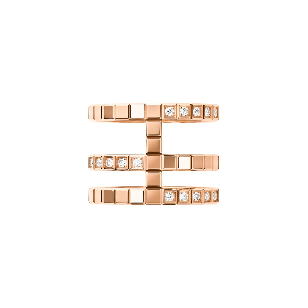 Dank seiner schlanken Form lässt sich der Ice Cube Ring sowohl einzeln als auch im „Stacking“ tragen. Er symbolisiert feine Stärke, natürliche Eleganz und ethische Handwerkskunst – die moderne Definition von Chopard-Luxus.
