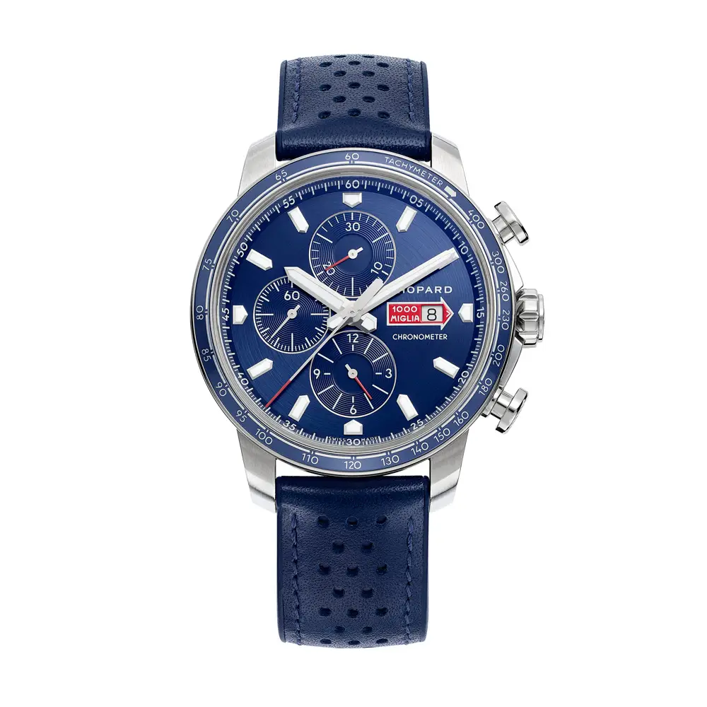 Die Chopard Mille Miglia GT Azzurro Chrono ist die ideale Uhr für den modernen Mann, der Motorsport-Tradition, luxuriöses Design und Schweizer Spitzentechnologie zu schätzen weiß.