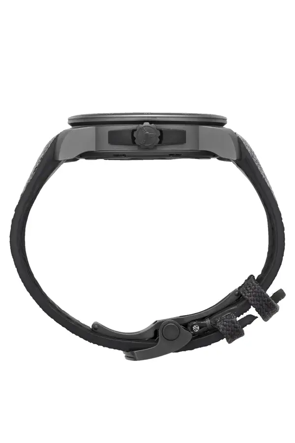 Ein schwarzes Textilband mit Faltschließe rundet das sportliche Design perfekt ab.